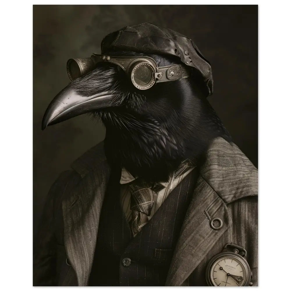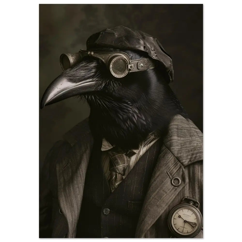 Deze afbeelding toont een dier, gekleed in een prachtige vintage steampunk outfit. Het draagt een elegante, bruin gestreepte jas met subtiele patronen en discrete accenten. Om de nek hangt een antieke, koperen klok, die de klassieke uitstraling benadrukt. De kop wordt gesierd door een paar stijlvolle, metaalkleurige brillen met verfijnde bronzen details, wat een vleugje mysterieuze allure toevoegt. De schouders zijn afgezet met leren accenten die een robuuste uitstraling geven. De achtergrond is een gedempte, bloemrijke patroon die een romantische maar sombere ambiance creëert, perfect passend bij het steampunk-thema.