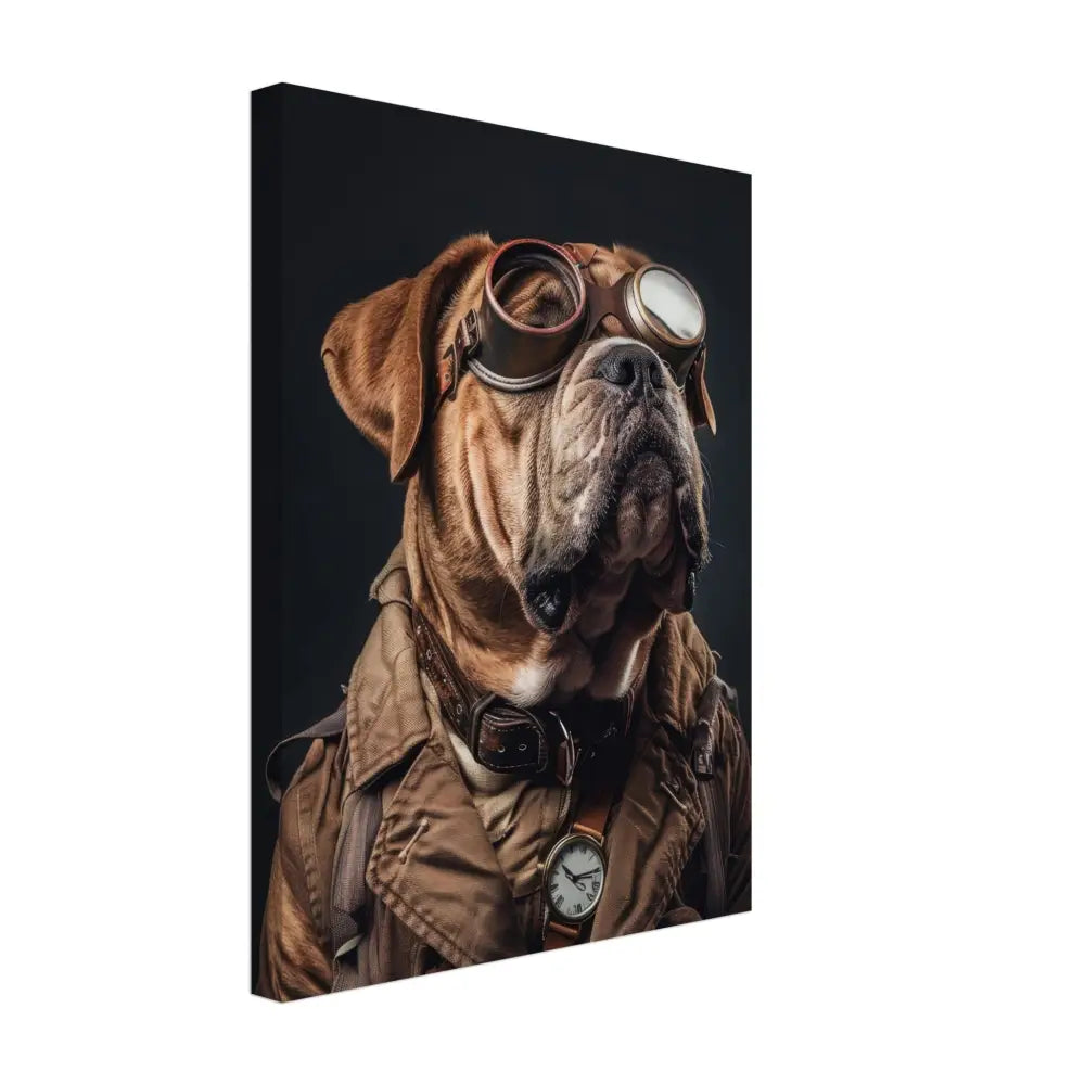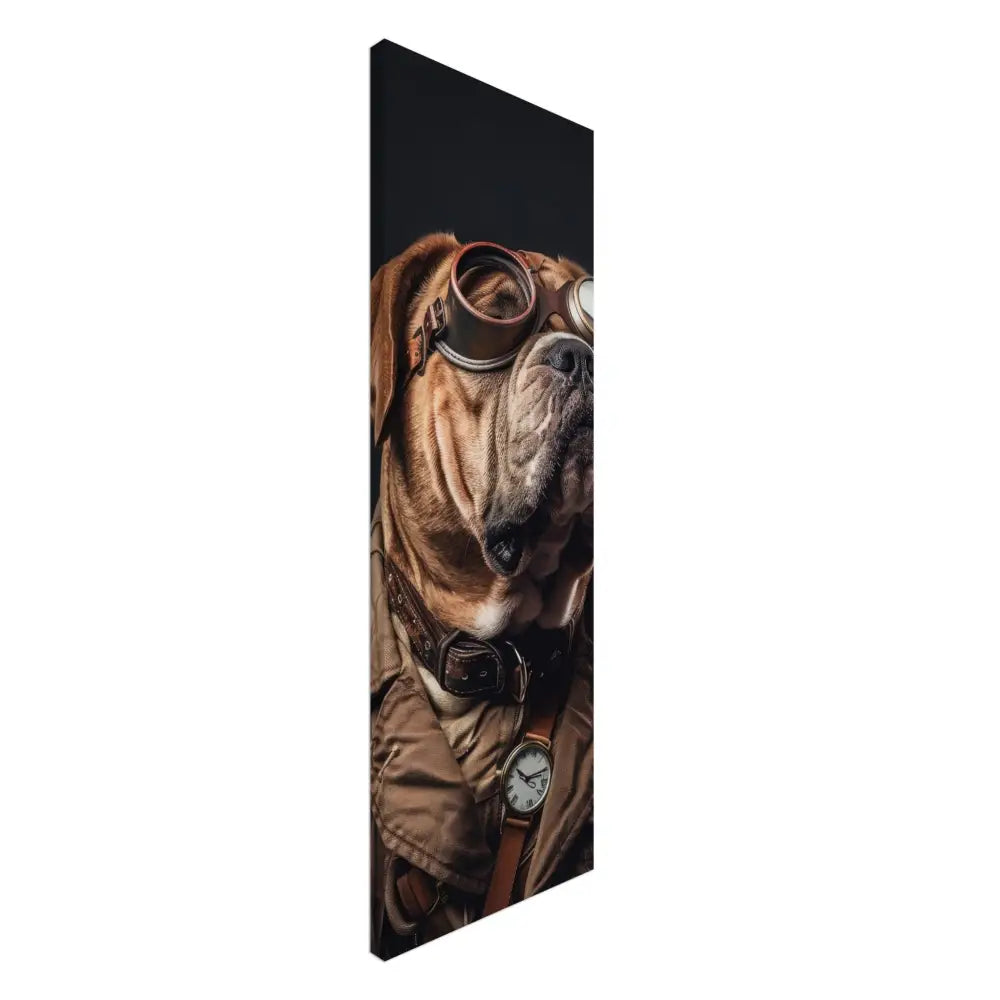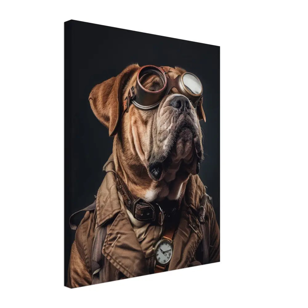 Deze afbeelding toont een dier, gekleed in een prachtige vintage steampunk outfit. Het dier draagt een elegante, bruine jas met fijne stiksels en leren accenten die de robuuste uitstraling versterken. Om de nek hangt een antieke klok, zilverwit van kleur, die subtiel glinstert in het licht. De kop wordt geaccentueerd door een paar stevige, retro-futuristische brillen met metalen details in koperkleur, die de nieuwsgierige blik versterken. De pootjes zijn voorzien van zachte, bontachtige manchetjes die comfort en stijl samenbrengen. De achtergrond bestaat uit een donkere, mysterieuze setting die het steampunk-thema perfect complimenteert.